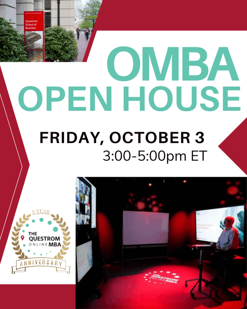 Mark your calendars! OMBA is thrilled to announce that we will be hosting an open house for our whole community on Friday, October 3, 3:00-5:00pm ET. Spend the afternoon with OMBA to celebrate fall in New England and commemorate OMBA’s 5th year of operations! Network and reconnect with classmates and friends, meet OMBA fellow students, alumni, faculty and staff.